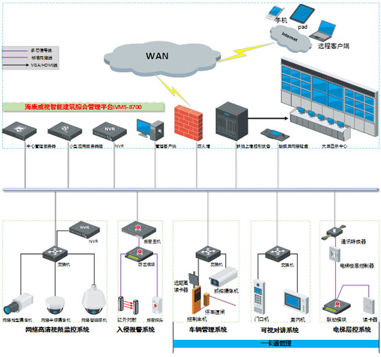 小區(qū)安全防范系統(tǒng)涵蓋的子系統(tǒng)越來越多,包括但不限于視頻監(jiān)控系統(tǒng)、入侵報警系統(tǒng)、車輛管理系統(tǒng)、可視對講系統(tǒng)等,長期以來,技術(shù)安防領(lǐng)域眾多分項系統(tǒng)各自為政,各廠家單一業(yè)務(wù)的產(chǎn)品規(guī)劃,造成后期與其它系統(tǒng)的接入難度高,在資源與業(yè)務(wù)整合上產(chǎn)生瓶頸。如何將同一項目的多個弱電分項系統(tǒng)進行統(tǒng)疇規(guī)劃,統(tǒng)一管理,建設(shè)一個居住安全舒適,服務(wù)功能齊全,同時滿足管理人員高效、便捷管理的智能化小區(qū),是房產(chǎn)投資方、物業(yè)管理人員以及小區(qū)用戶日益關(guān)注的話題。