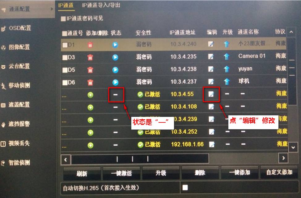 IP通道狀態(tài)是“—”的情況,點(diǎn)編輯修改。