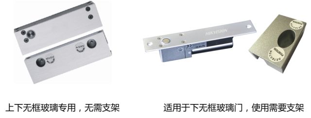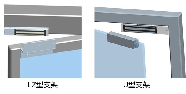 海康威視經銷渠道目前的支架主要有LZ型、U型兩種。LZ型可以適用于下有框門,L支架用于固定磁力鎖在門框上,Z型支架固定在門上。