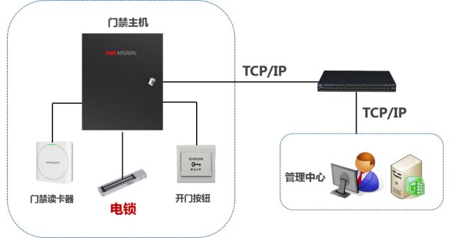 以下面這個簡單的門禁系統(tǒng)為例,它是由門禁主機、門禁讀卡器、開門按鈕、電鎖、管理軟件等組成,而電鎖就是其中的一個重要環(huán)節(jié)。