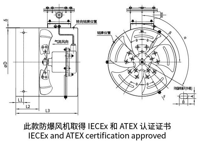型號 | φD | L1 | L2 | L3 | δ | A | B | n | α | β | θ |