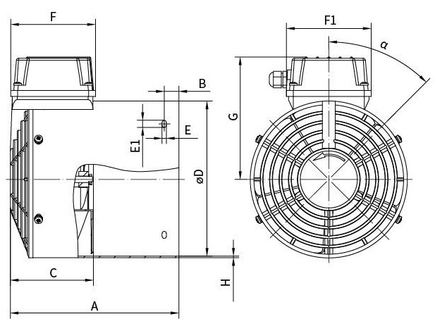 型號(hào) | A | B | C | D | E | E1 | F | F1 | G | α |