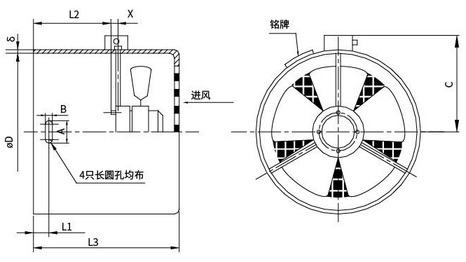 此系列風(fēng)機(jī)主要用于鋁殼電機(jī)的強(qiáng)制冷卻,但電機(jī)可分為帶尾軸和不帶尾軸,風(fēng)機(jī)尺寸將會(huì)做相應(yīng)調(diào)整,安裝孔為4孔十字均布。