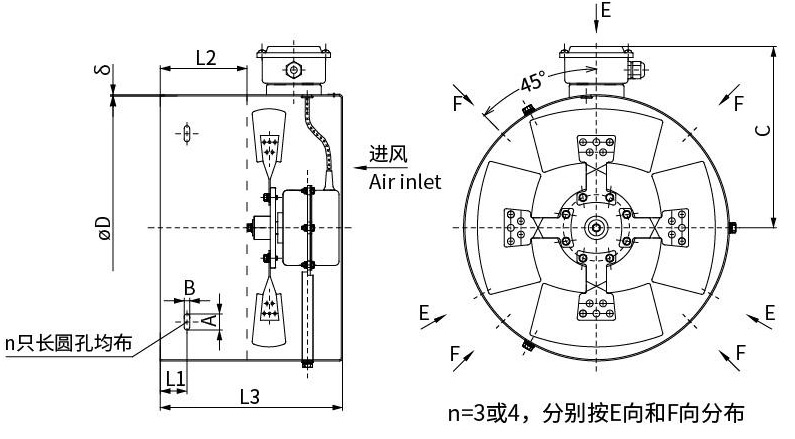 型號 | φD | L1 | L2 | L3 | δ | A | B | n | C |