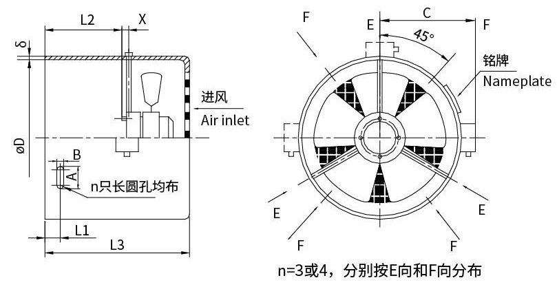 型號(hào) | φD | L1 | L2 | X | L3 | δ | A | B | n | C |